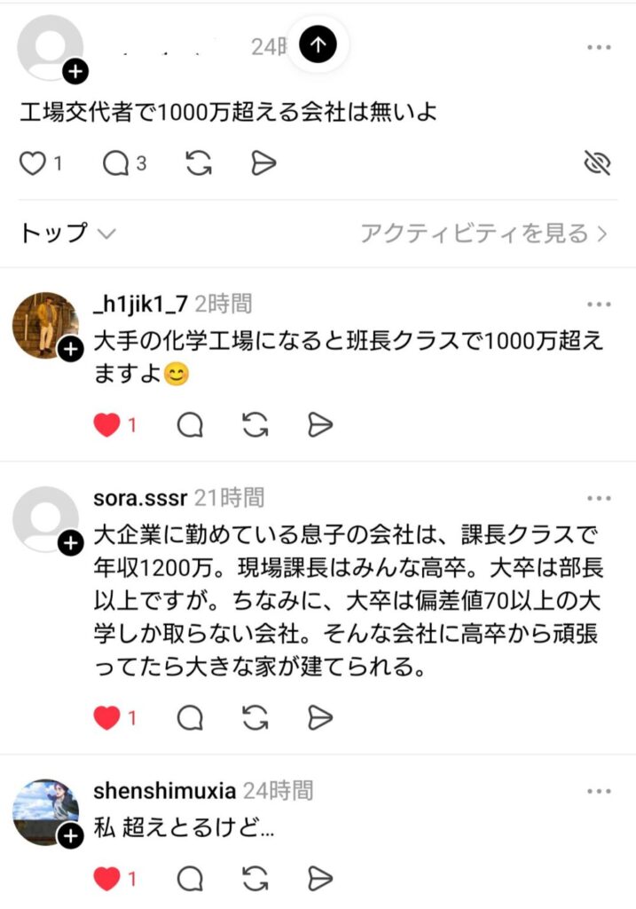 「求人見てたら『化学工場プラントオペレーター』って仕事が気になってきた。夜勤のある交代勤務らしいけど大企業で給料(年収)高いみたい。実際どれくらいもらえるか知りたいな。