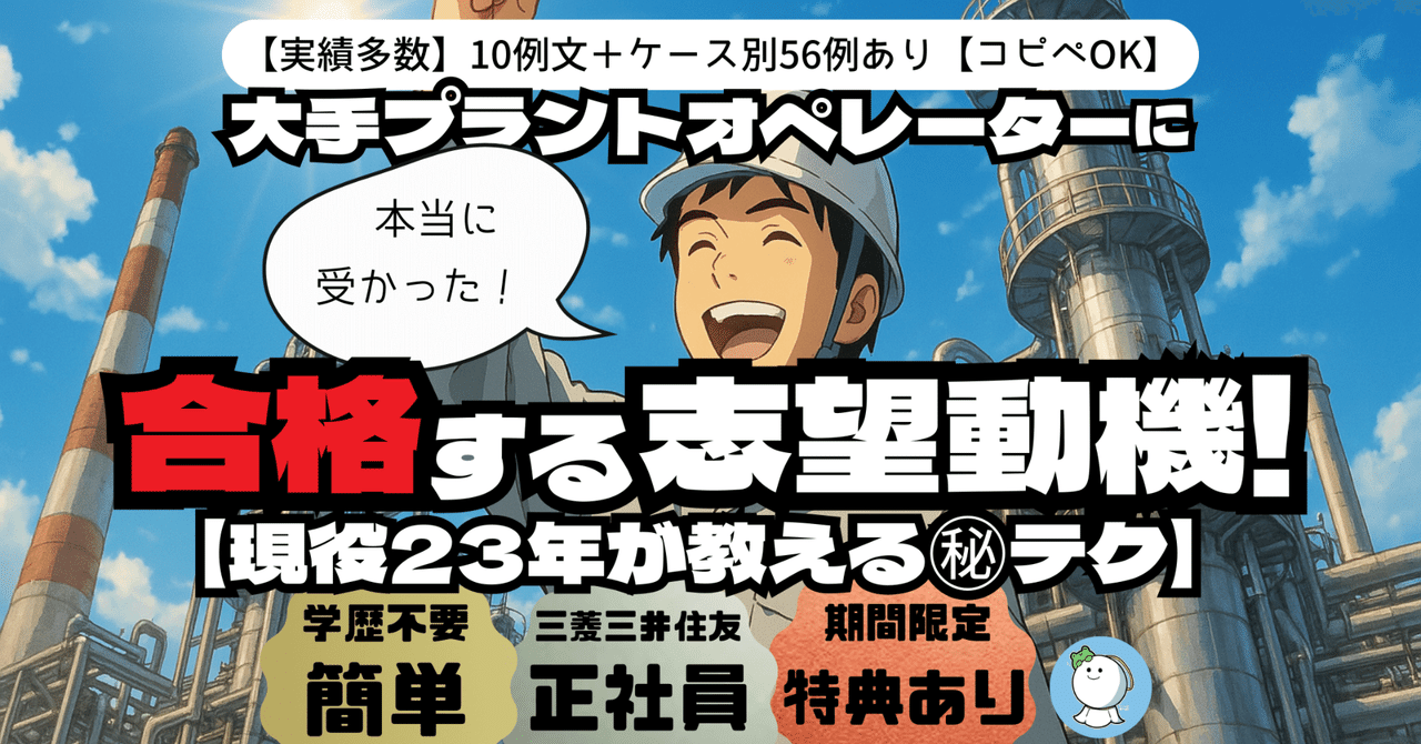 ≫【無料あり】大手化学工場プラントオペレーターの内定をゲットする志望動機の書き方「10例文+ケース別56例」付き【コピペOK】