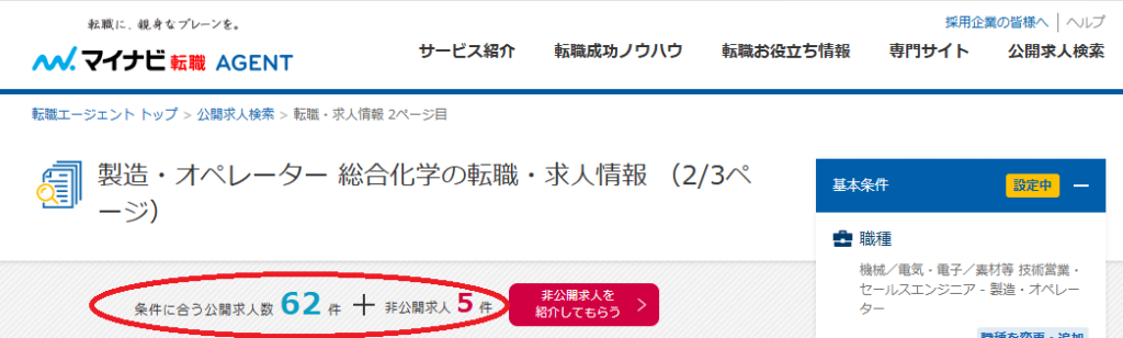 そこで、主要な転職エージェントで[化学 オペレーター]というキーワードで実際に検索してみました。